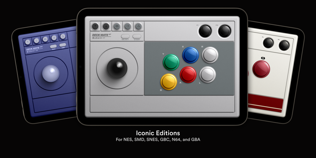 Deck Mate is a series of large-format controllers designed specifically for use with Delta Emulator on iPad. Built for an AirPlay-only experience, it’s a unique interface meant to be used on your coffee table, desk, or laptop— great for casual play or showcasing retro games on the big screen.